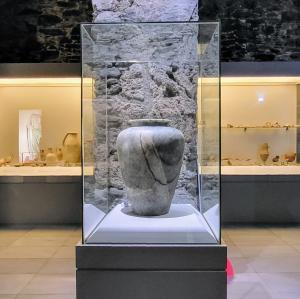 Ces voûtes parfaitement conservées abritent un musée archéologique, qui présente des objets des époques phénicienne, égyptienne, et romaine. La pièce maîtresse du musée est un vase funéraire égyptien datant du 16e siècle avant JC (photo 2).
