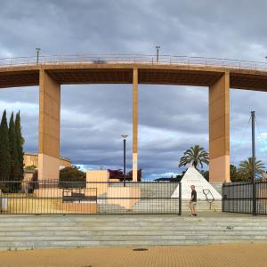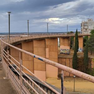 Le parc fut conçu dans les années 1980. Son intérêt majeur est une très haute passerelle circulaire (photos 1 et 2) depuis laquelle il est possible d'avoir un ravissant panorama sur la ville et le delta (photo 3). La forme de la passerelle rappelle intelligemment le Muelle del Tinto, le plus important lieu d'intérêt de la ville. Si vous craignez de rentrer dans la parc, vous pouvez sans problème apercevoir la passerelle depuis l'extérieur du parc ou même en marchant dans la rue entre le point 8 et le point 9 (voir les pointillés sur la carte).