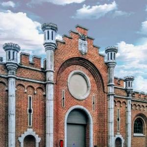 Un ancien manège de cavalerie de style néomédival du 19e siècle.