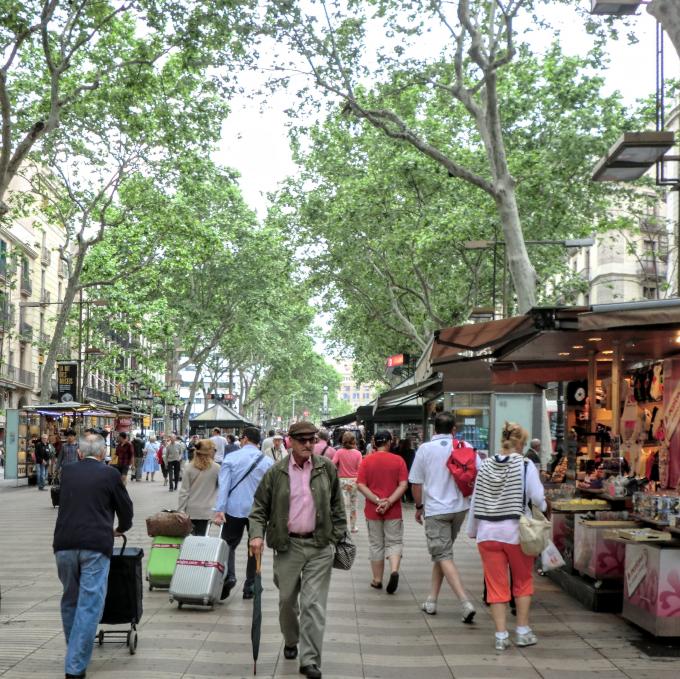 C'est l'avenue emblématique de Barcelone. Les Ramblas sont construites sur le lit d'un ancien ruisseau. Rambla signifie sable en arabe, car il ne faut pas l'oublier, l'Espagne est sous domination arabe du 8e au 11e siècle. Les Ramblas traversent la vieille ville, avec le quartier gothique à l'est et El Raval à l'ouest, deux quartiers très populaires. Cette avenue (longue de 13 km) est très agréable car elle est piétonne au centre (les voitures sont sur les côtés). De nombreuses petites boutiques et cafés-restaurants contribuent à animer cette artère.
