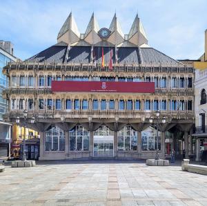 • L'hôtel de ville actuel (Ayuntamiento, au sud, photo 2), datant de 1976, un bâtiment d’inspiration néo-gothique avec une originale façade surmontée de pinacles avec un toit en pente.
