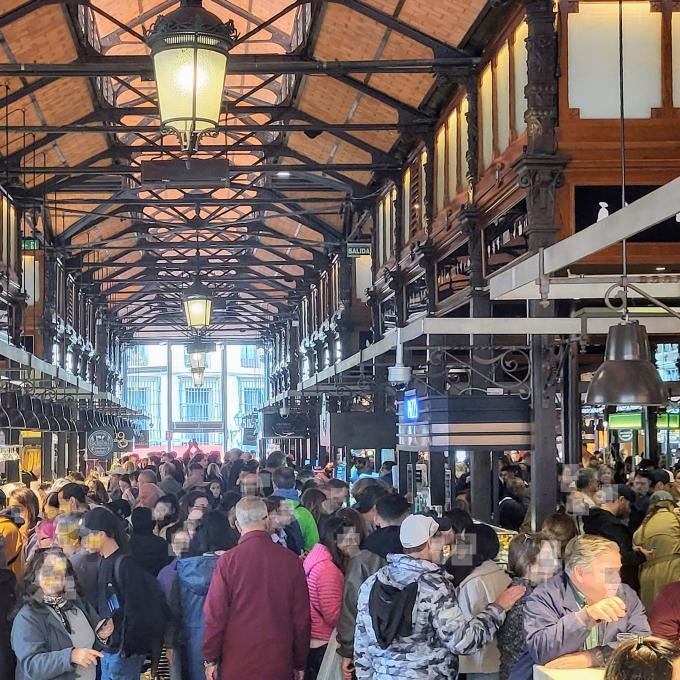 Cet élégant marché couvert, construit en 1916 et rénové en 2009, se distingue par sa structure en verre favorisant la lumière du jour traversante. Ce marché gastronomique, d'une surface de 1·200 m², se compose de nombreux stands offrant une multitude de produits très alléchants et colorés comme des pintxos ou des tapas de qualité.
