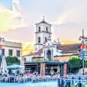 Bordée d'édifices remarquables (co-cathédrale, mairie...) et de nombreux cafés restaurants, c'est la grande place de Mérida. Le carillon de la mairie (au nord de la place) sonne tous les quarts d'heure.