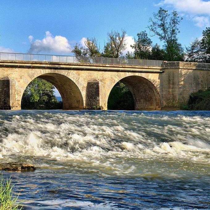 Marquant la limite départementale entre la Haute-Saône et le Doubs, beau point de vue depuis le pont sur la rivière Ognon et le barrage (Photo 1 de la présentation.)