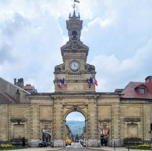Cette porte ˝décorative˝ est l'emblème de la ville. Elle se trouve à l'emplacement d'une ancienne porte d'entrée ˝défensive˝, Pontarlier étant protégée par des remparts et des fossés. Elle est construite en 1771, avec pour modèle la porte Saint-Martin à Paris. Le campanile, l'horloge et la cloche (qui sonne tous les quarts d'heure) seront ajoutés plus tard.
