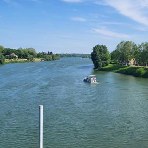 Depuis le milieu du pont sur la rivière Saône, beau panorama sur les deux rives de la ville.