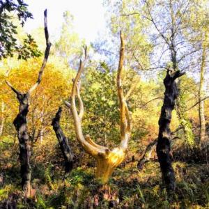 Pour célébrer le renouvellement de la forêt suite aux incendies de 1990, un sculpteur créa une mystérieuse œuvre d’art: au milieu d'un endroit étrange où se dressent de petites pierres levées et des chênes noircis, l'artiste recouvrit totalement de 5000 feuilles d’or un arbre calciné, dont les branches ressemblent aux bois d’un cerf.
