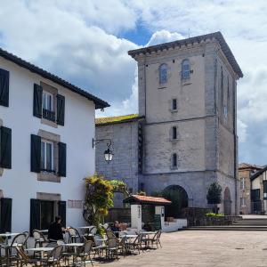 Cette église du 16e siècle se distingue par son gros clocher carré haut de 22 mètres. L'intérieur de l'église est typiquement basque avec ses galeries en bois sur trois niveaux, son retable baroque, et ses dalles funéraires en grès rose au sol.