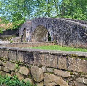 Ce pont sur la rivière Nivelle ne date pas de l'époque romaine mais du 15e siècle. La pierre sculptée sur la pile centrale, visible uniquement à marée basse, sert de repère pour connaître la hauteur de l'eau. Après les inondations de 1983 qui l'avaient partiellement détruit, ce pont fut reconstruit à l'identique.