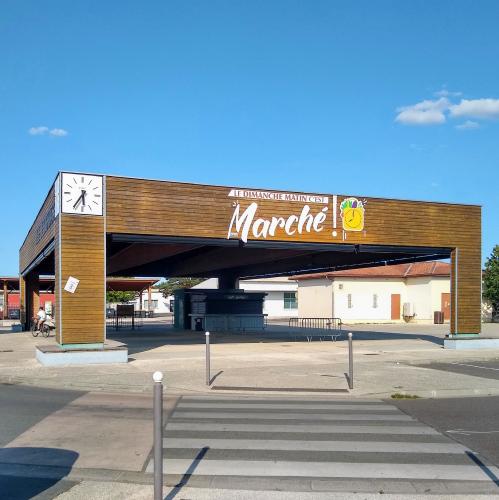 Située face à la mairie de Biganos, cette halle accueille un marché tous les dimanches matin.