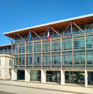 Cet hôtel de ville à l'architecture contemporaine soignée fut édifié en 2012 à l'emplacement d'une ancienne école et devant l'ancien hôtel de ville.