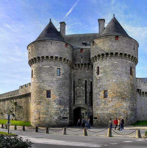 En proie aux guerres entre Francs, Bretons et Normands, la ville fut fortifiée au 15e siècle. Les remparts, qui donnent un charme fou à la ville, comportent six tours, quatre portes fortifiées et quelques poternes, ces ouvertures toutes simples qui facilitent la circulation des habitants; car vivre dans une ville fortifiée en temps de paix n'est pas chose aisée! Songez que pour faciliter l'extension de la ville, les rempart faillirent disparaitre au 19e siècle!