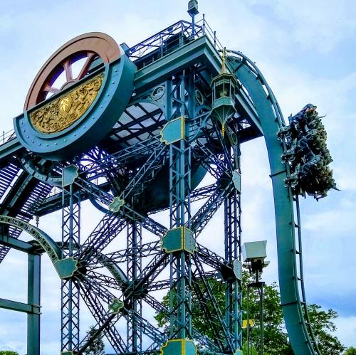 La thématisation de ce grand huit est absolument ravissante. Elle reprend tous les codes de l'industrie minière néerlandaise de la fin du 19e siècle: Métal, toits d'usine en dents de scie, wagonnets... Dans la file d'attente, vous aurez l'occasion de croiser le fameux baron, propriétaire de l'usine. Pour ce qui est du parcours, accrochez-vous! Vous aurez les pieds dans le vide, et sur la première portion du circuit, la descente est verticale sur 37 mètres. Pas le temps de vous remettre de vos émotions, vous entrez à près de 90 km à l'heure dans un tunnel sombre et brumeux...