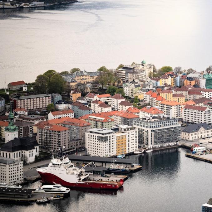 Ce quartier excentré, situé au bout d'une péninsule, fut durant des siècles le site d’exécution à Bergen. On y brûla même des sorcières aux 16e et 17e siècles. Quartier chaud au 19e siècle, c'est aujourd'hui un élégant quartier familial doté d'un joli parc, situé au bout de la péninsule et offrant un vaste panorama. Le quartier abrite également l’aquarium de la ville (Akvariet), qui présente entre autres la faune maritime locale (pingouins, phoques...).