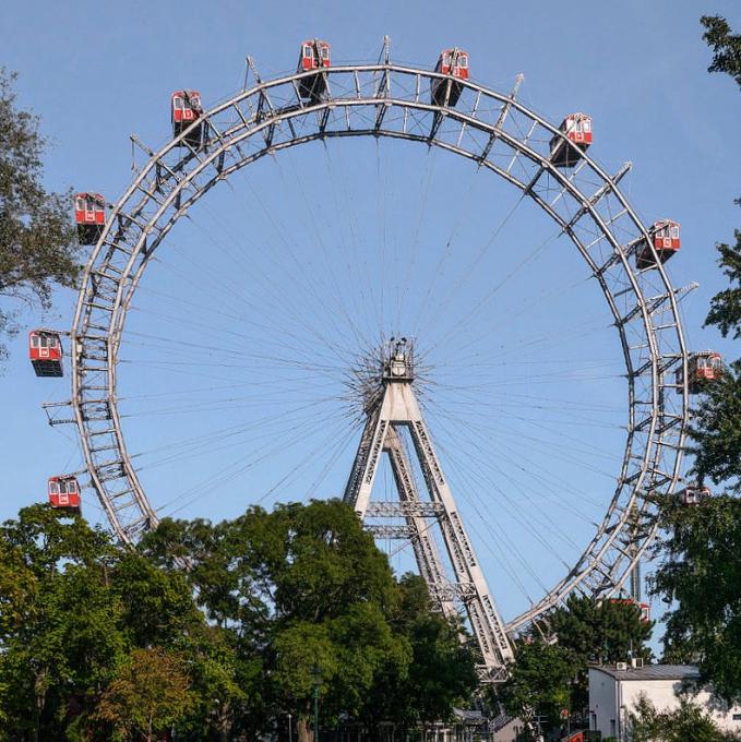 Cette grande roue de 65 mètres de haut inaugurée en 1897 est l'emblème de la ville et du Prater, un immense parc urbain comptant une fête foraine permanente, un parc, un palais des congrès et le plus grand stade d'Autriche (Ernst-Happel-Stadion).