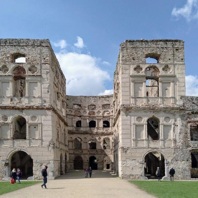 Le château, qui fut construit au début du 17e siècle, fut partiellement détruit par les Suédois en 1655, puis réduit en ruines par les Russes en 1770.