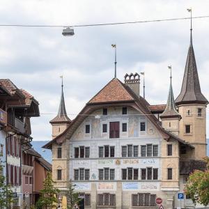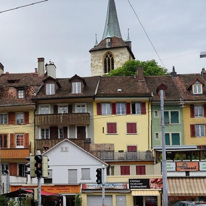 Cette charmante place est la place principale de la ville. Elle est bordée par de beaux immeubles colorés à arcades, pour la plupart d'anciennes maisons de corporations, , et un temple allemand (Stadtkirche) datant du 15e siècle, qui est la principale église protestante réformée de la ville et l’une des églises gothiques tardives les plus importantes du pays. La jolie maison d'angle à tourelle est l'ancienne maison des forestiers. Elle abrite de nos jours des bureaux administratifs. La fontaine du banneret (≡ porte-drapeau d'une milice), au centre de la place, date de 1546 (Vennerbrunnen).