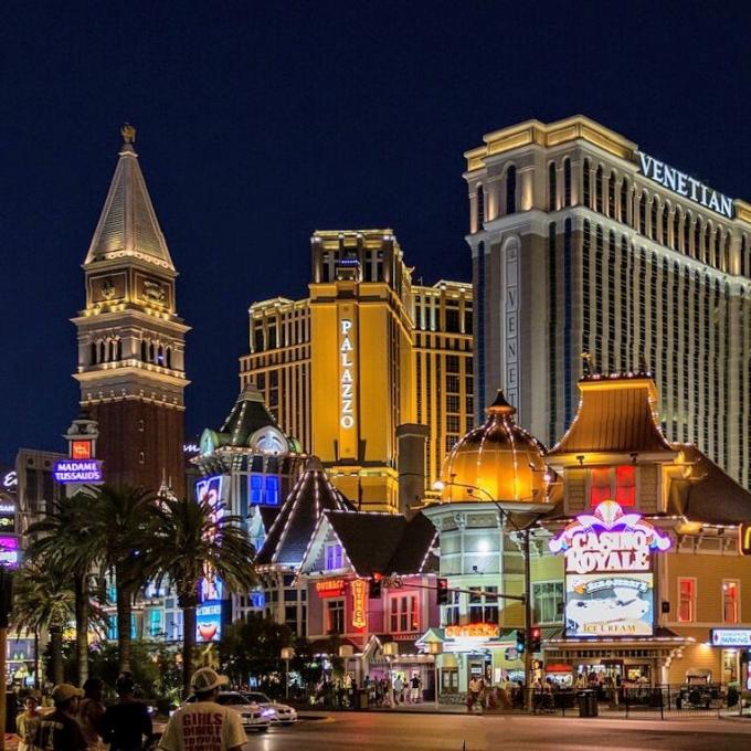 Côté délice, de gigantesques et somptueux hôtels thématisés (financés avec l'argent de leurs casinos) ainsi que des attractions époustouflantes. Comme par exemple, les canaux et les gondoles du Venitian Hotel, le plus grand hôtel au monde avec 7·000 chambres. Ou encore, les fontaines musicales du Caesars Palace Hotel, le bateau pirate du Treasure Island Hotel ou la Tour Eiffel du Paris Hotel...